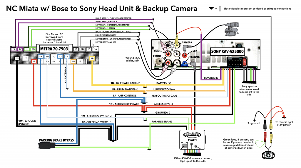 For the wiring we need to connect between the new radio and the mazda plugs inside, and also accommodate for the steering wheel controls and maybe the handbrake/park override. It seems you just need to make sure the harness has CANBUS support. So this is what I have come up with from the videos.