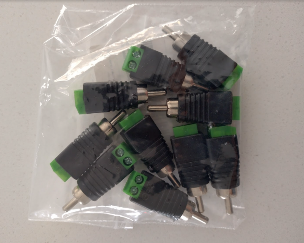 - 4 x solderless RCA plugs (for the Atoto line out converters) (maybe a few more to replace existing AUX