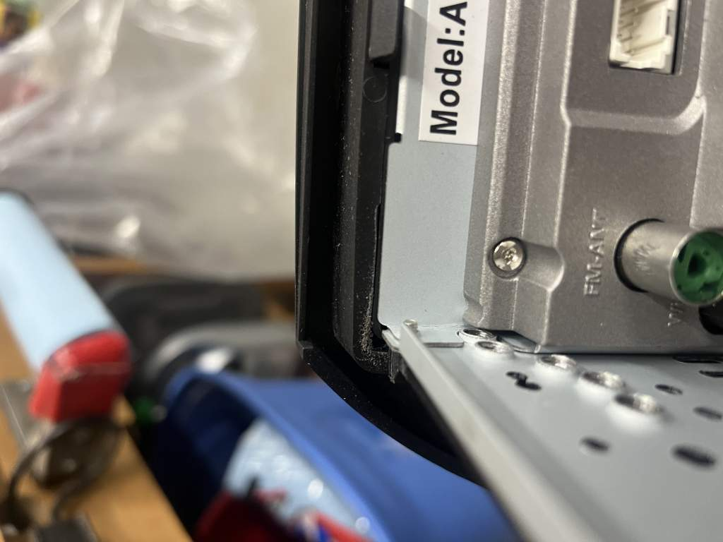 - filed ~1/16” off the top two corners of the Metra double din opening. When I tried to stretch the dash piece over the Atoto, I found this to be the last spot that conflicted.