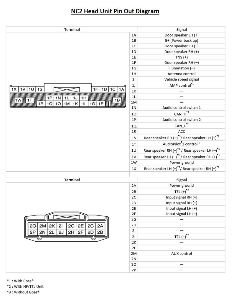 Note: The smaller white plug that goes in to the back of the stock MX5 radio seems to be ignored by everyone – mine has one and the only thing I’m aware of is the AUX port down in the tray area, so once I have the radio out again I’ll trace this to confirm what it does. I’m going to be very annoyed if I had bluetooth available for 7 years! Ok I have found photos I took while it was apart and a wiring diagram. The smaller plug seems to be more so the stock radio can react to the cars speed, lights, all of that – like a CANBUS. And also the AUX. So this is why people are ignoring it. I might see if I can wire up the AUX socket to the new radio anyway since I’ll be in there.