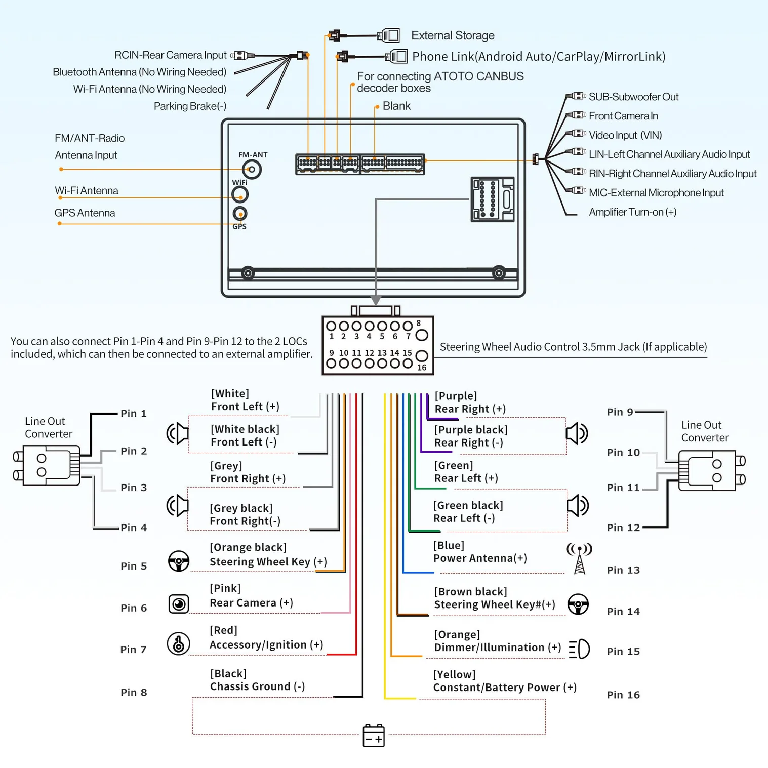 - You may need 2xline-out converters if you have an amp already (BOSE for NC2) and your radio doesn’t have RCA outputs (These come with SOME Atoto’s, others have the RCA outs already)