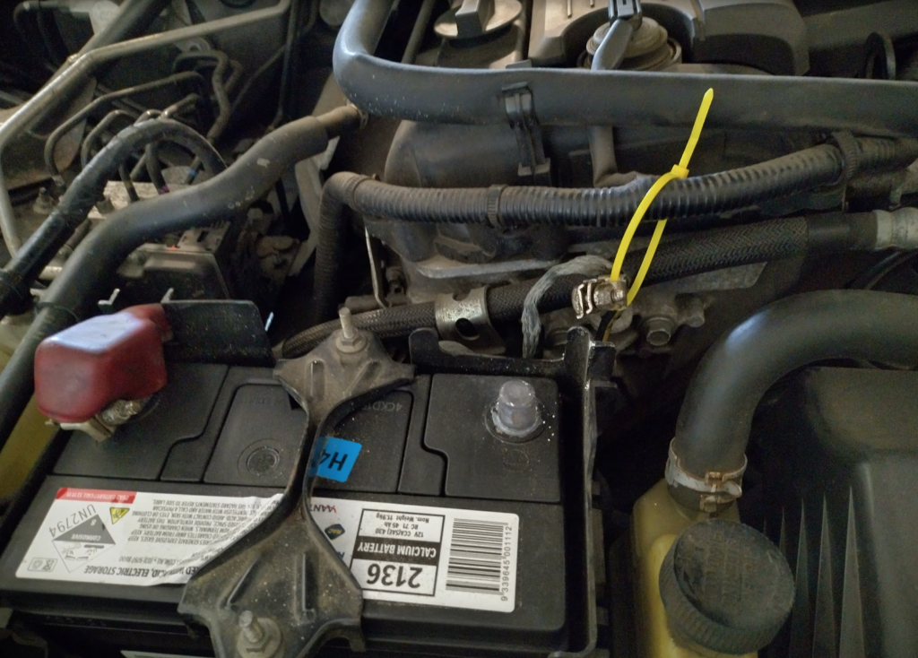 IMPORTANT: Disconnect the negative side of the battery (10mm socket). This prevents any accidental airbag deployments & electrical shorting. Make sure the cable is secured away from any metal parts of the car.