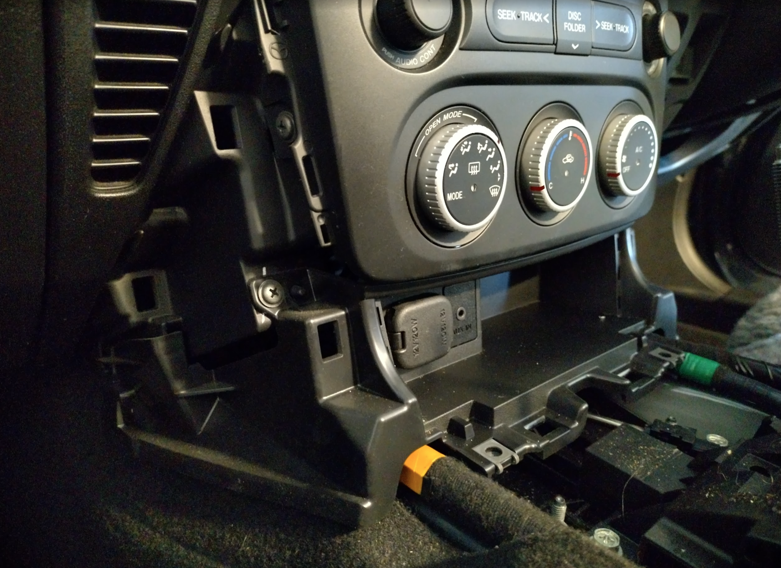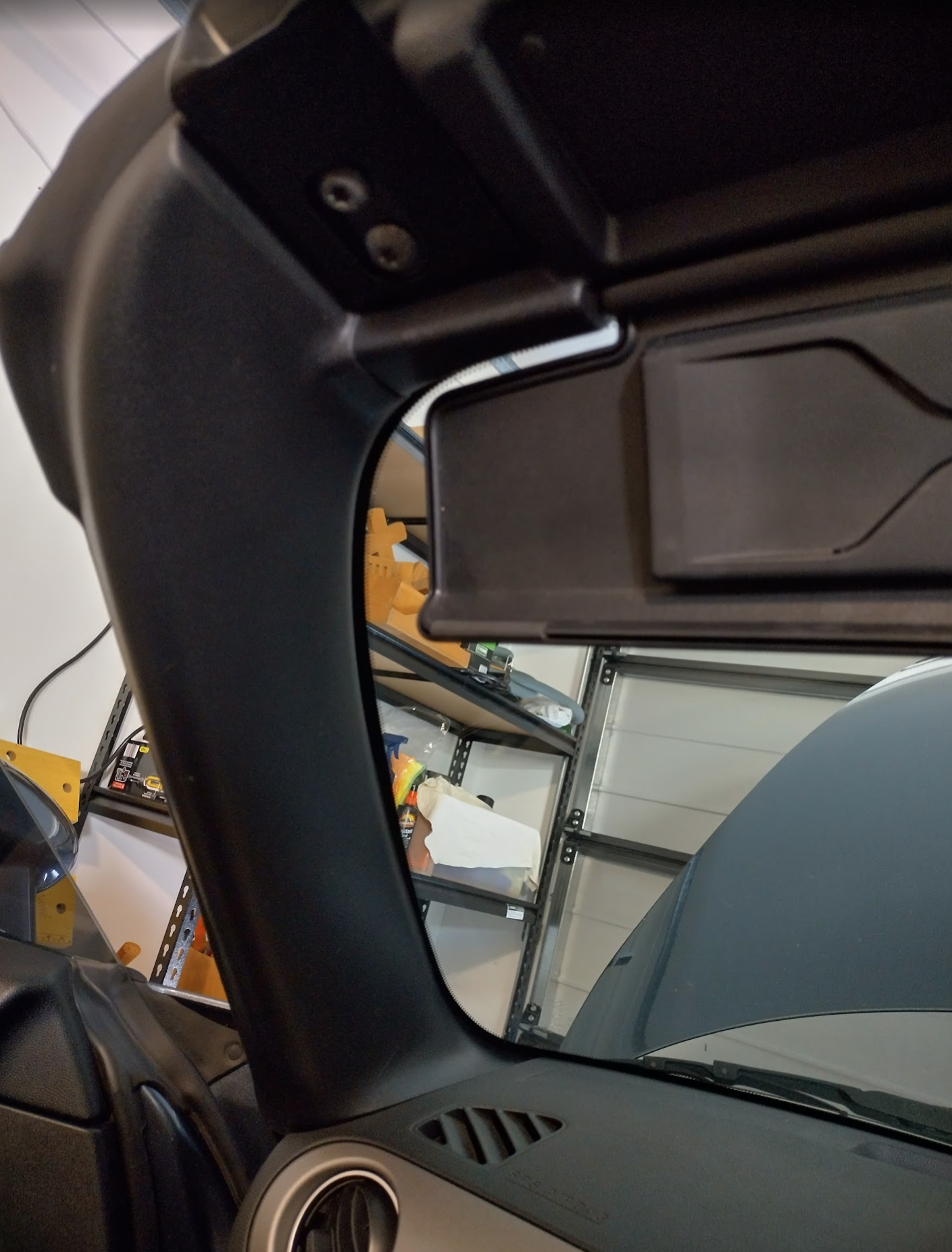 Undo 2 bolts inside, and one outside (covered by a black rubber bump). Leave the lowest one still screwed in a few turns to help hold the whole dash in place until you’re ready to remove.