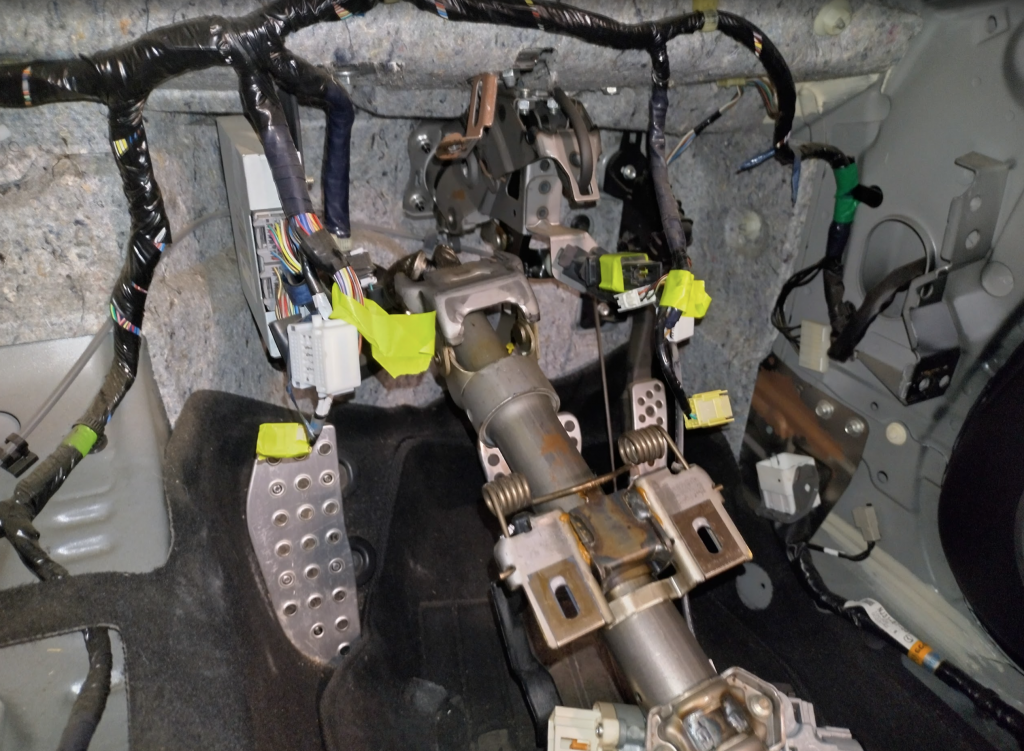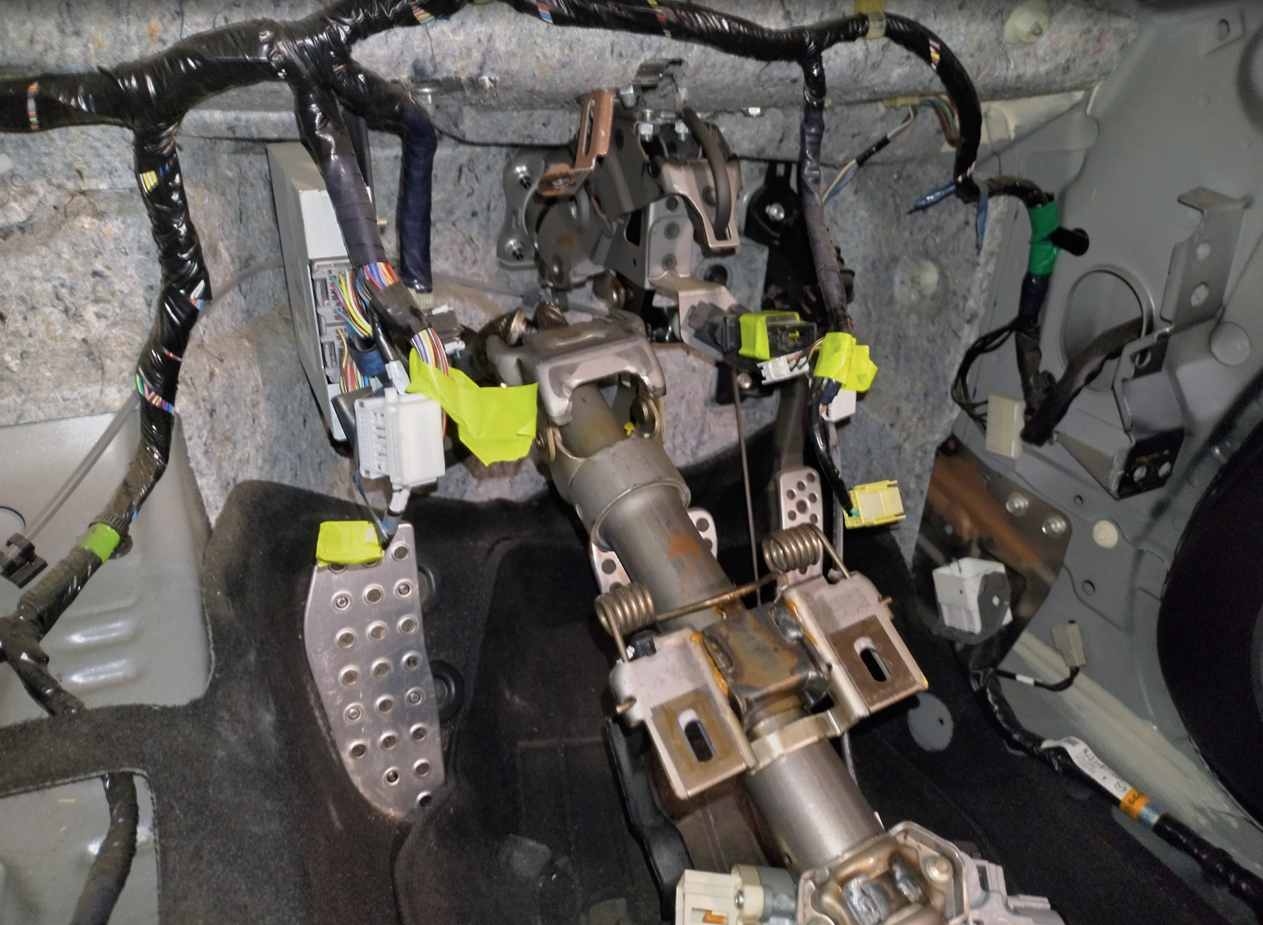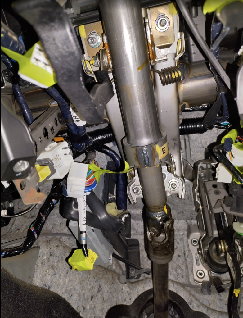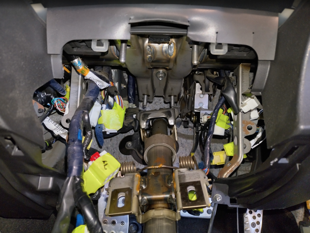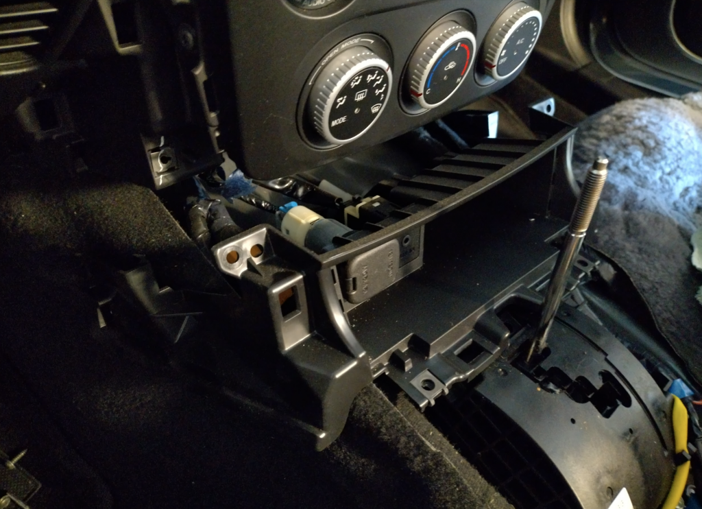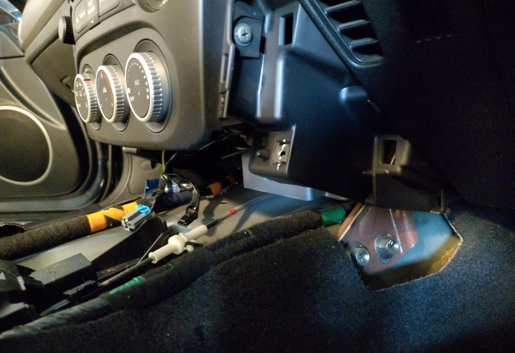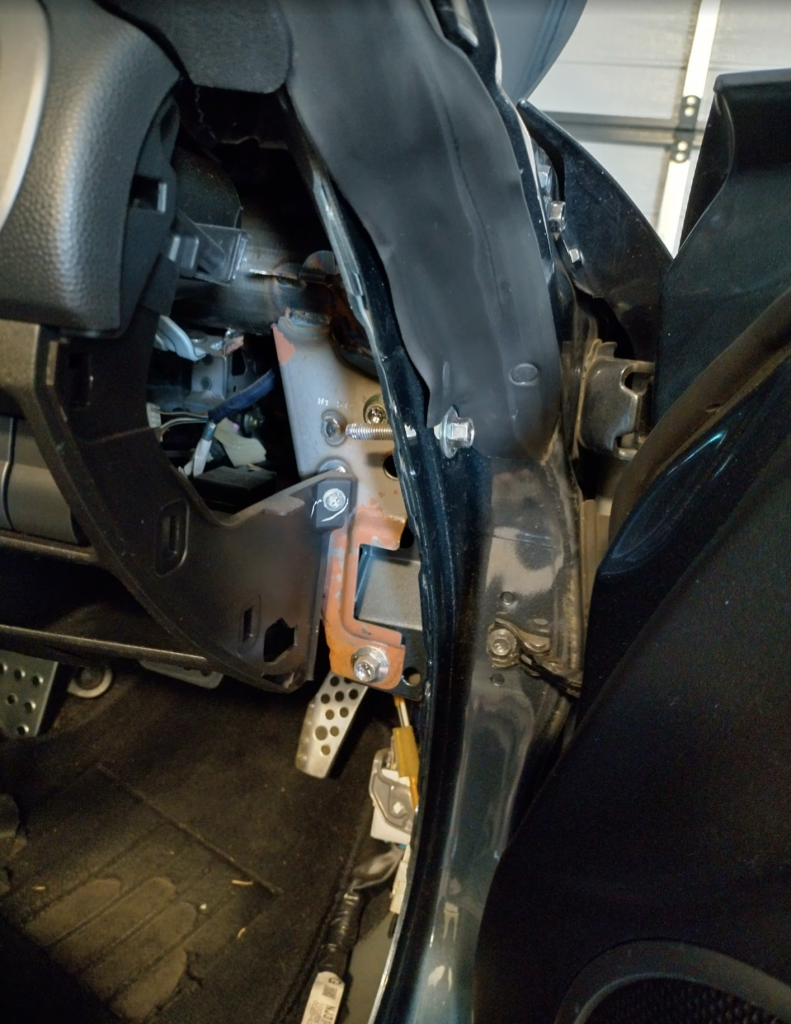 remove the plastic panel under the steering wheel. Mine doesn’t contain a similar metal shape underneath whereas almost every video or image online shows one. I’m unsure if my model or Australia just doesn’t have it as I don’t think this car has ever been apart to this degree. But if you have it, remove it also.