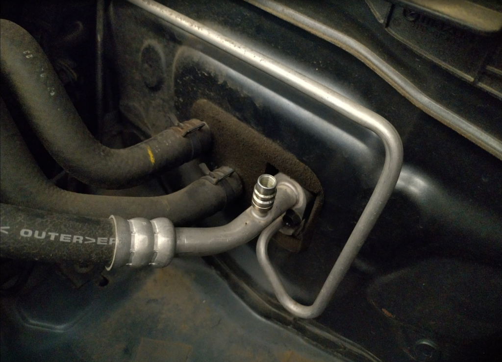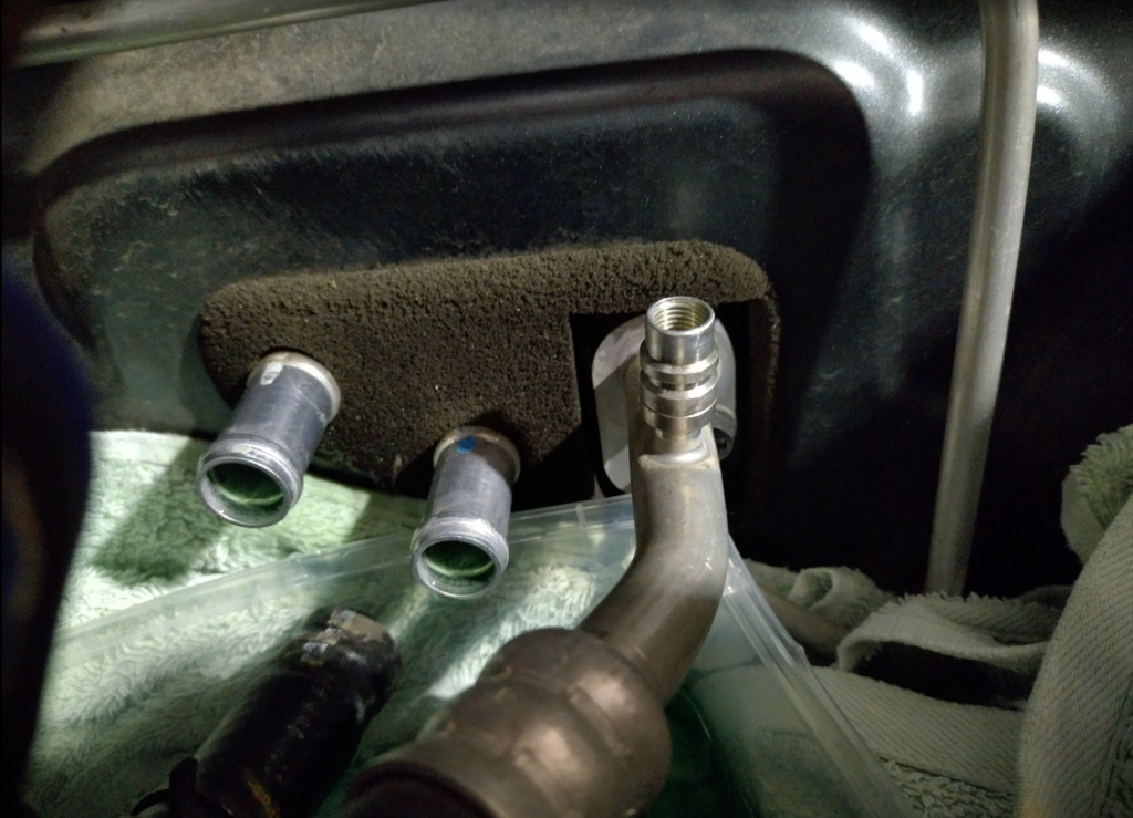 Cover coolant nibs – I used glove fingers taped on, water balloons or normal balloons might work well. The whole foam & mount area gets pulled out with the dash, don’t make my mistake in thinking that the pipes get pulled through and the foam & mount stay. So you can cover them with anything bulky.
