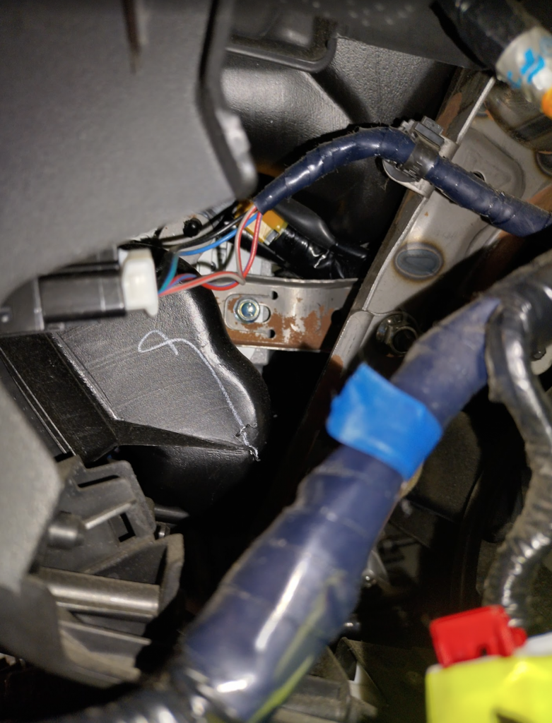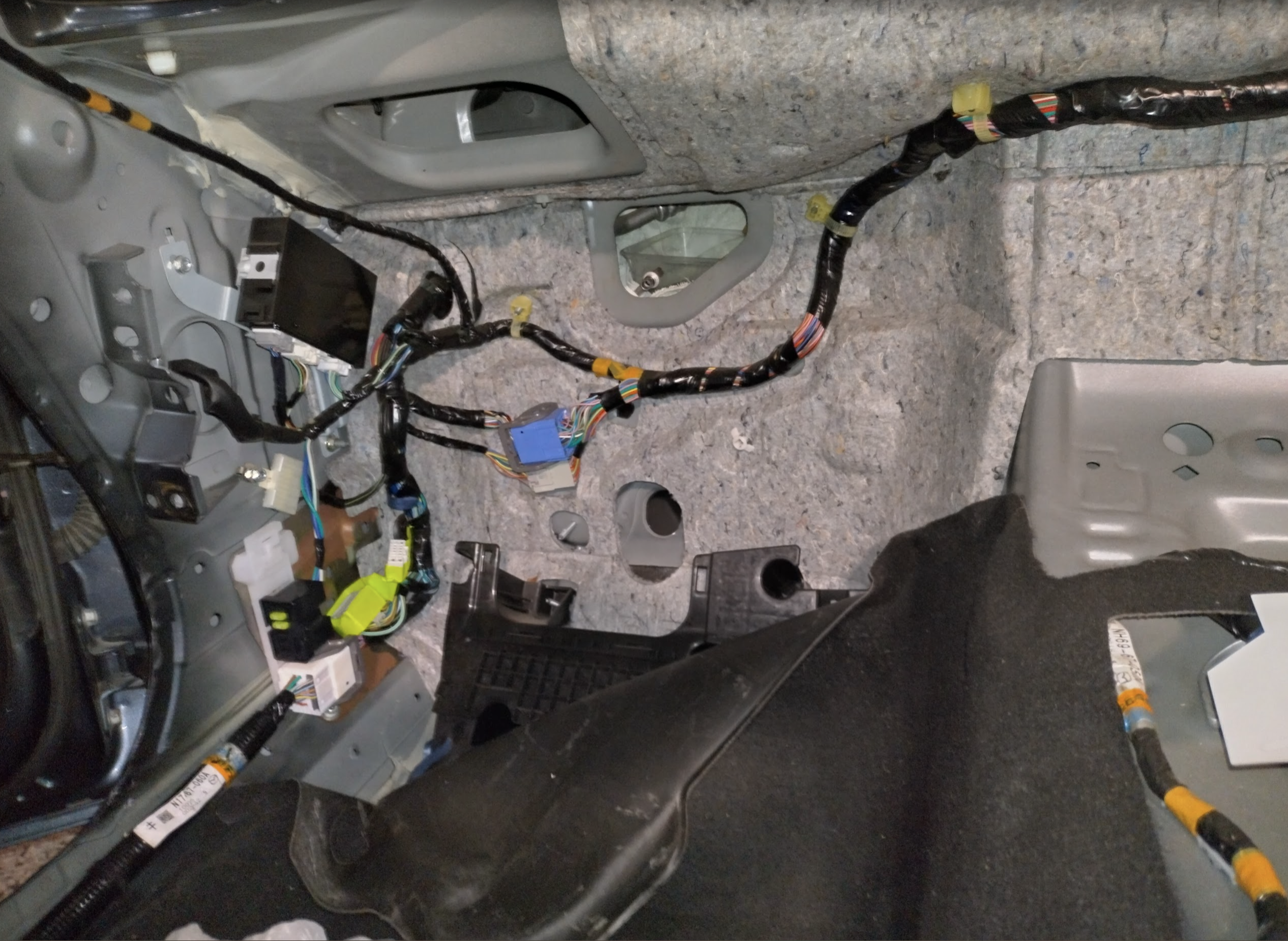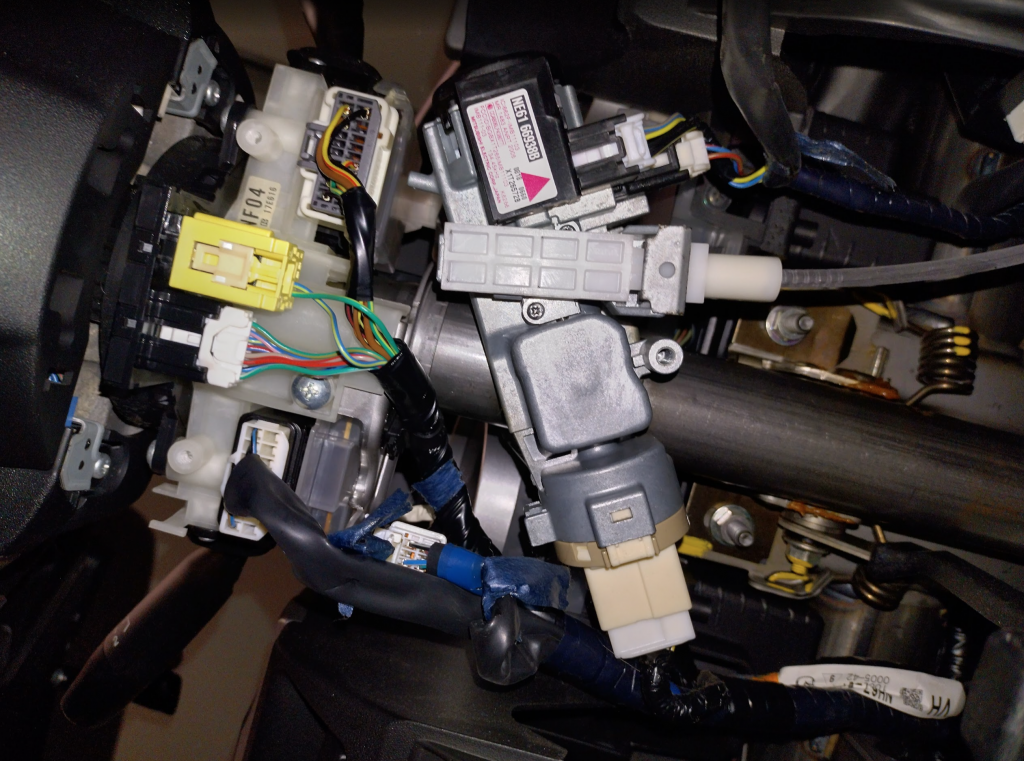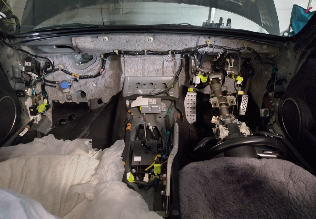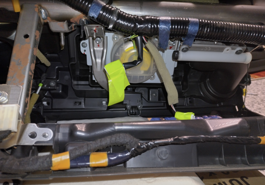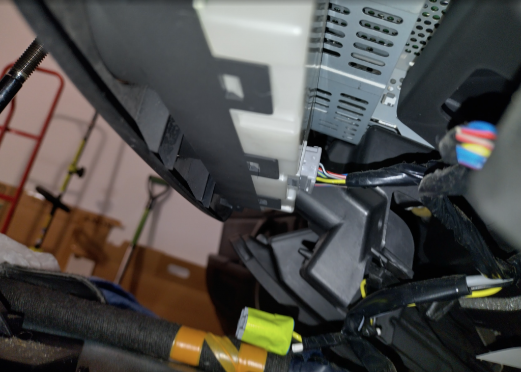 There are two wiring looms – one that stays connected to the firewall, the other is attached to the inner frame within the dashboard. The dashboard loom appears to be black, the firewall loom seems more like a dark blue?