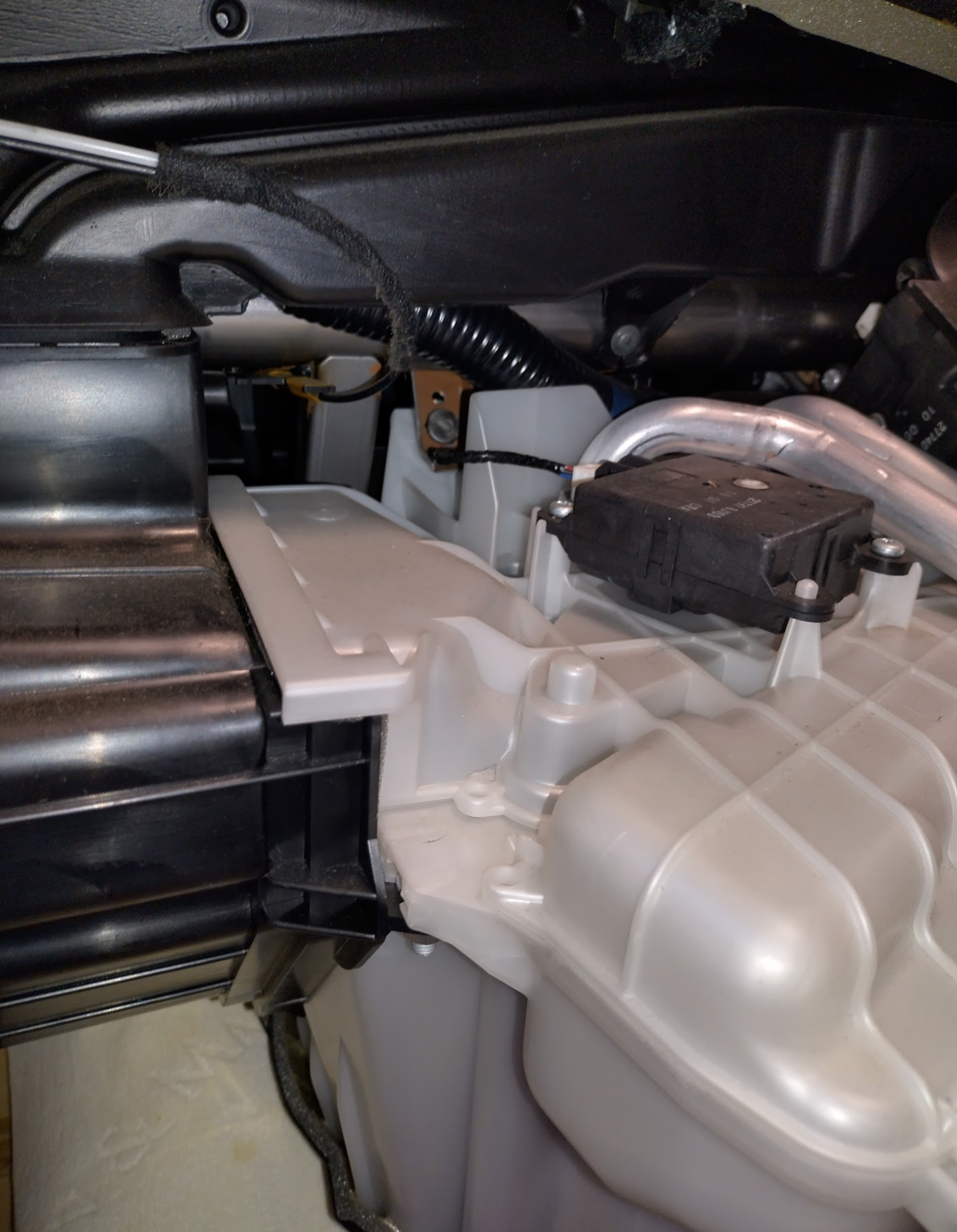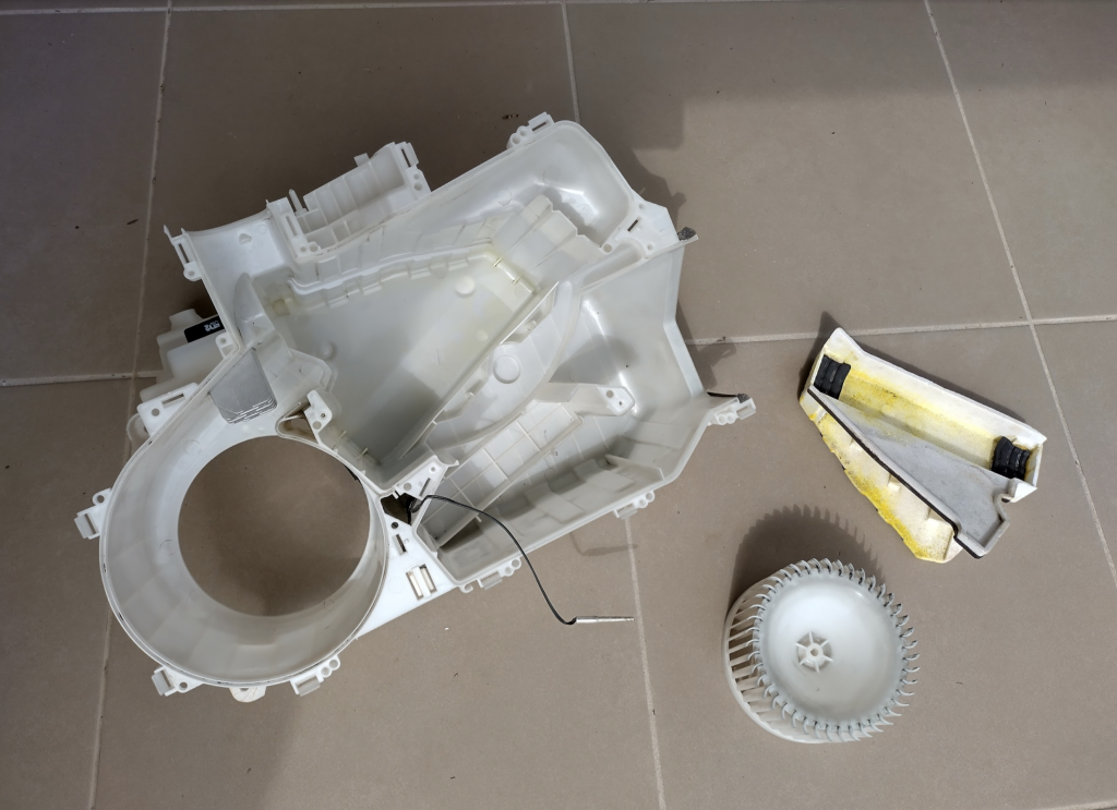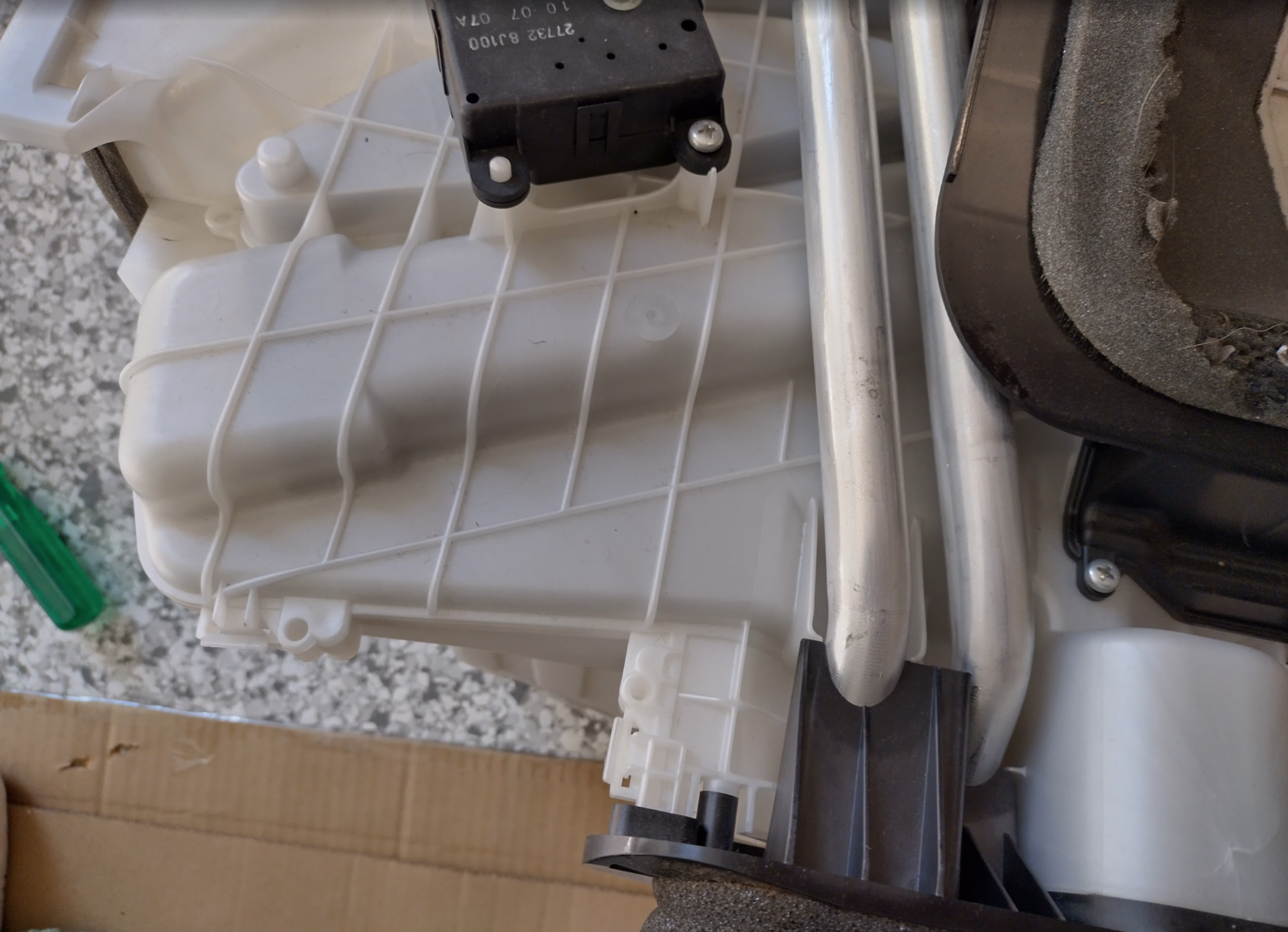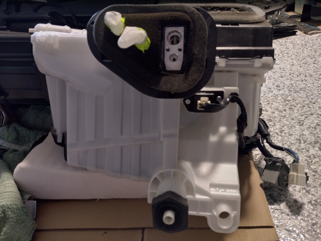 This contains the heater core, blower, and evaporator, along with all one sliding flap.