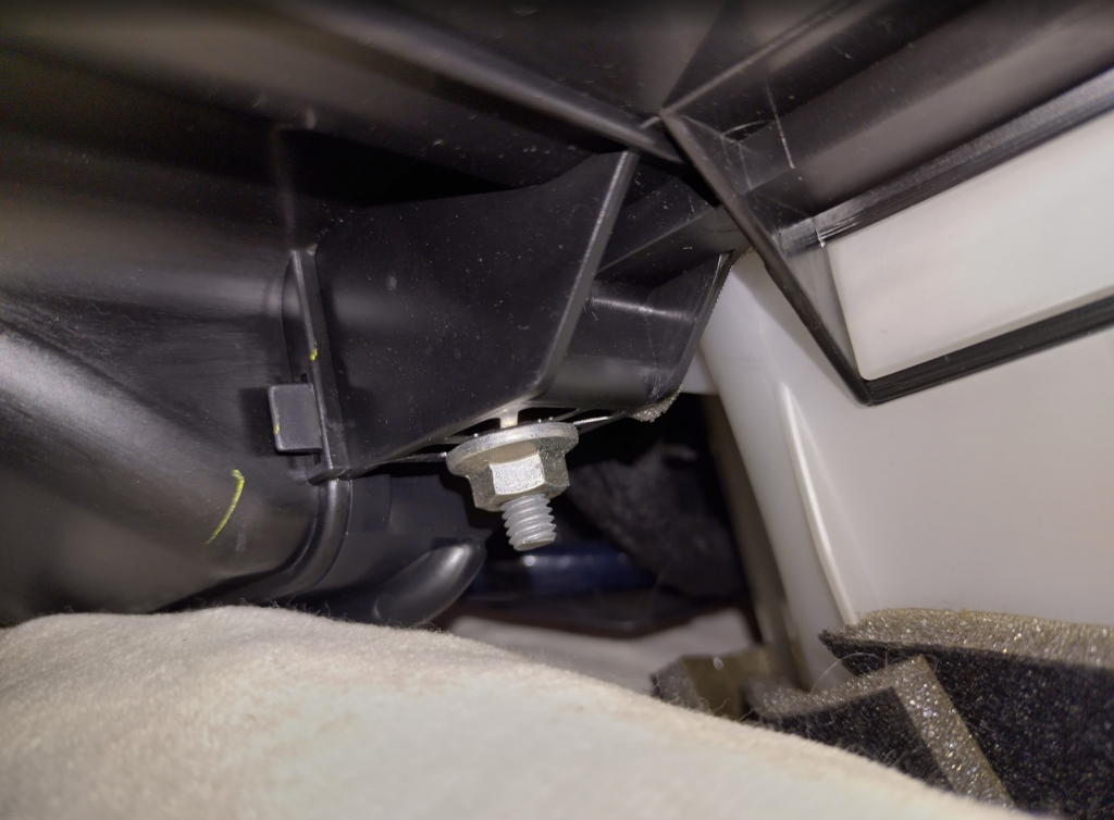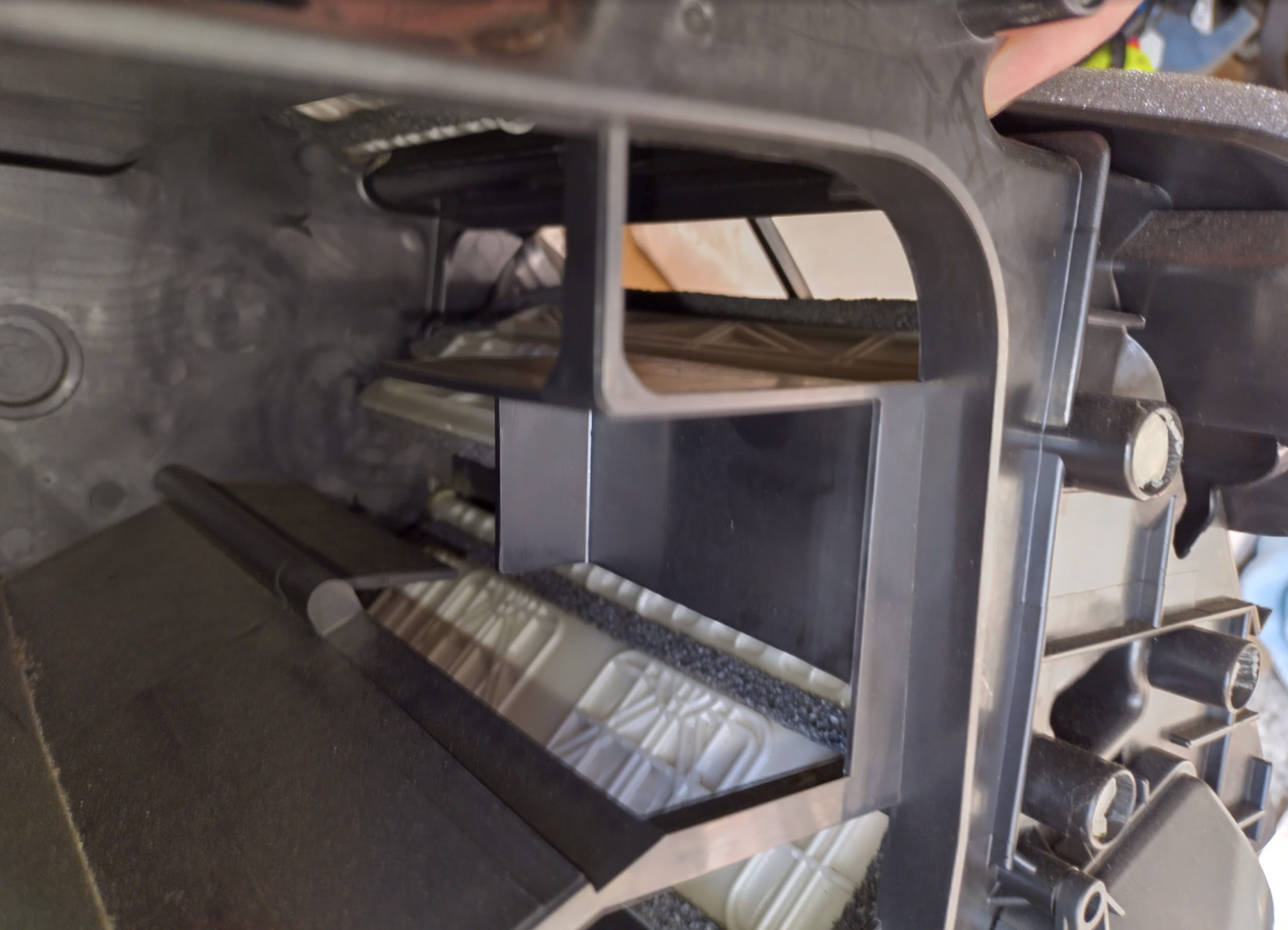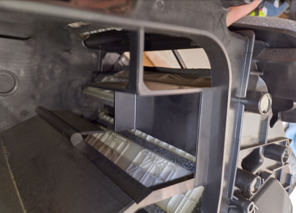We need to then remove the black firewall area, unfortuntely the foam has to come off as there’s a screw hidden underneath. Be careful not to drop any in the pipes. If you know where the screw is (from another photo) you can probably avoid removing this foam.