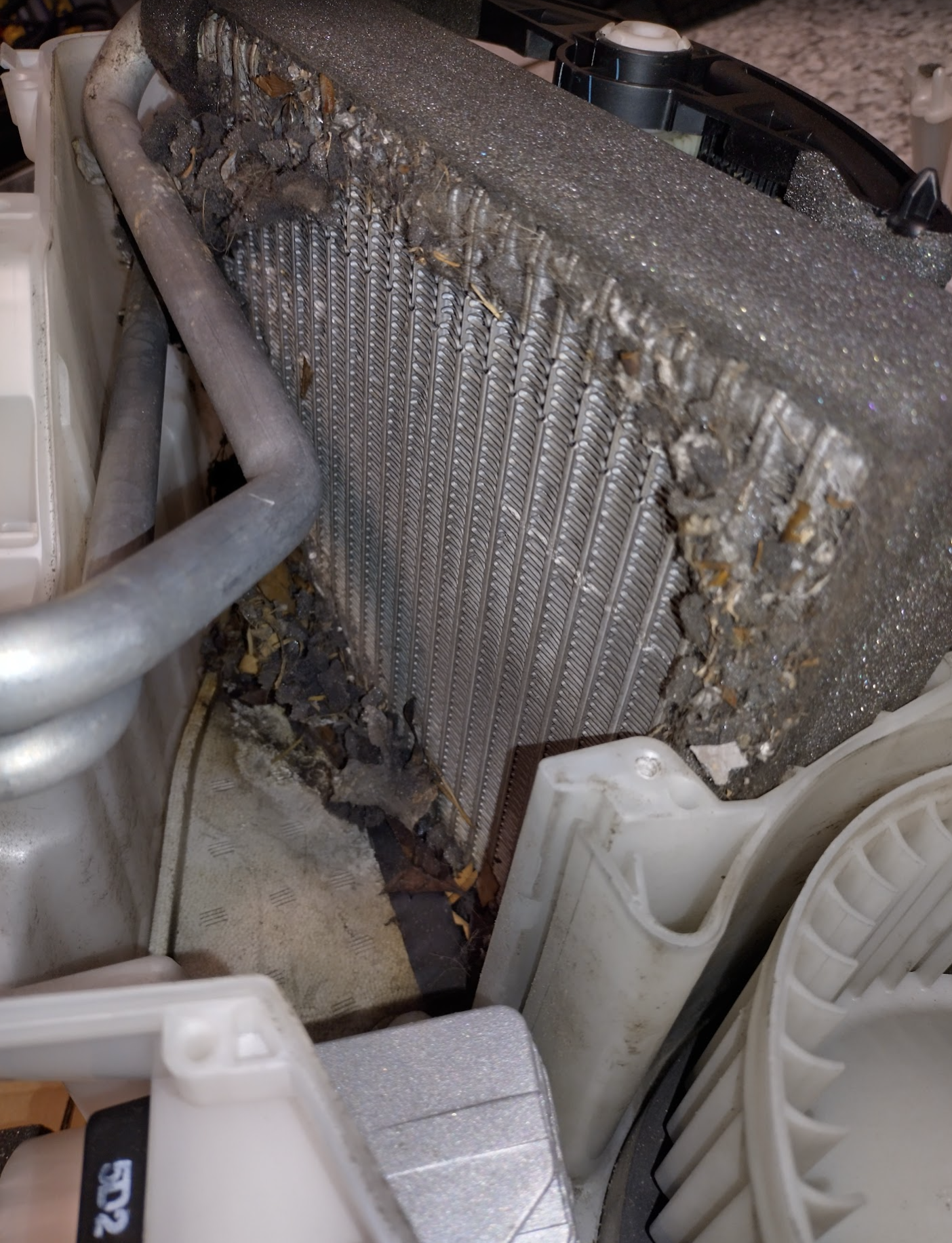 This is why we’re here. The existing evaporator looks a bit nasty on the side that receives outside air.
