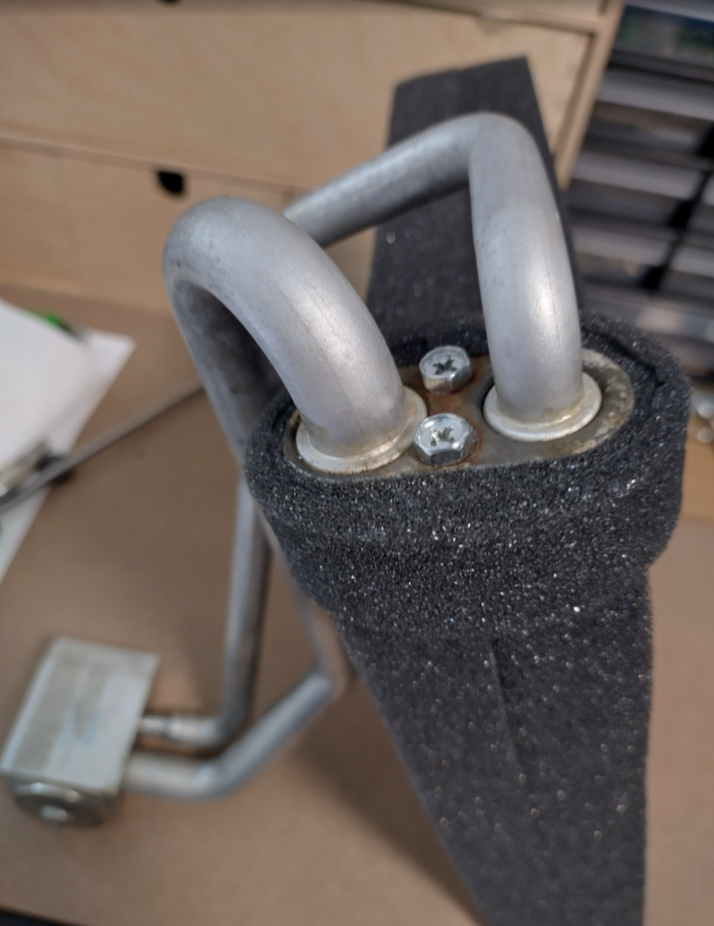 The replacement part doesn’t come with new pipes (maybe order these also if you’re going through this), so we need to clean up the old ones which is mainly removing the rust residue & the foam so we can put new foam on.