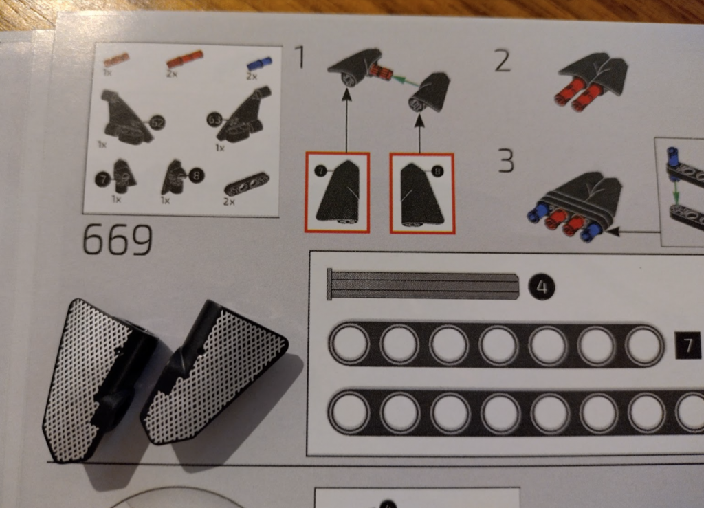 Here’s one that had me looking for pieces for a while. The two black “wing” looking pieces weren’t in the packets for this step, but I did have two mesh printed ones in the special parts. This isn’t clear in the manual, and the official manual (and photos of the set) aren’t obvious either as it’s very faint whereas mine are brightly printed. Hope this helps someone!