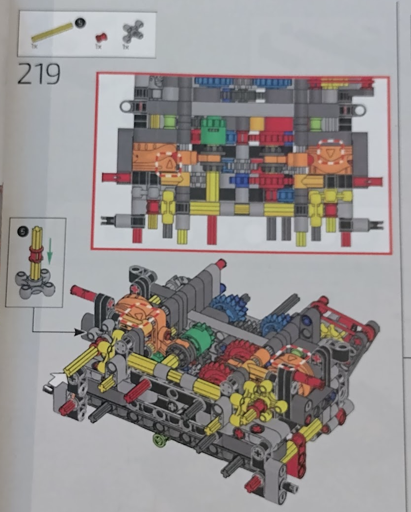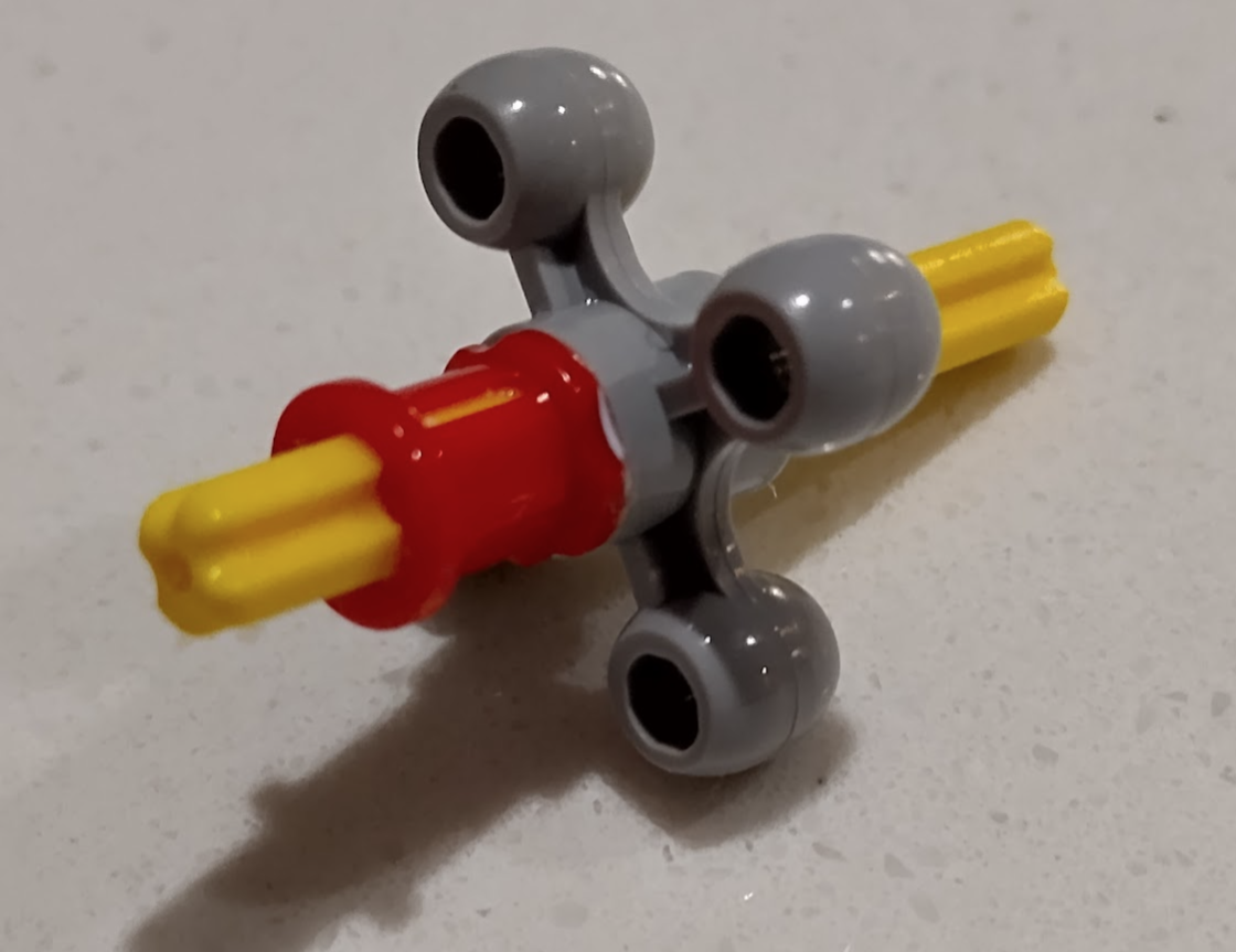With this set I couldn’t get the orange arrows lined up 100% correctly but close, then wondered why they put a grey one in at all – why not just use 3 yellows. Then it clicked why I couldn’t get the large orange wheels to line up to where the instructions wanted them. Officially different colours are sometimes used to indicate slight changes. Some identical connectors are different colours to indicate whether they are looser or tighter. In this case the two knobby gear things are meant to have different axle orientations. The grey is meant to be 45 degrees different.